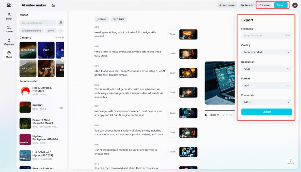 - AI script generation