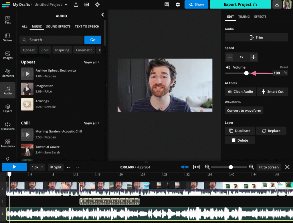 A browser-based editor known for automated captioning and quick faceless editing.